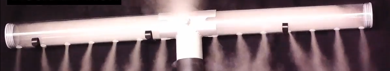 T-PATTERN SPLITTER FOR CONFIGURATING OF A 1.300 mm T-PATTERN FOG RAKE VERSION OF 80 mm OD (TOGETHER WITH TWO FL.650.80-STR FOG RAKE ELEMENTS) including 80 x 1.300 mm FOG RAKE T-PATTERN VERSION, TRANSPARENT, FITTED WITH 90° OUTLET DIRECTION NOZZLES (POM-C, BLUE)